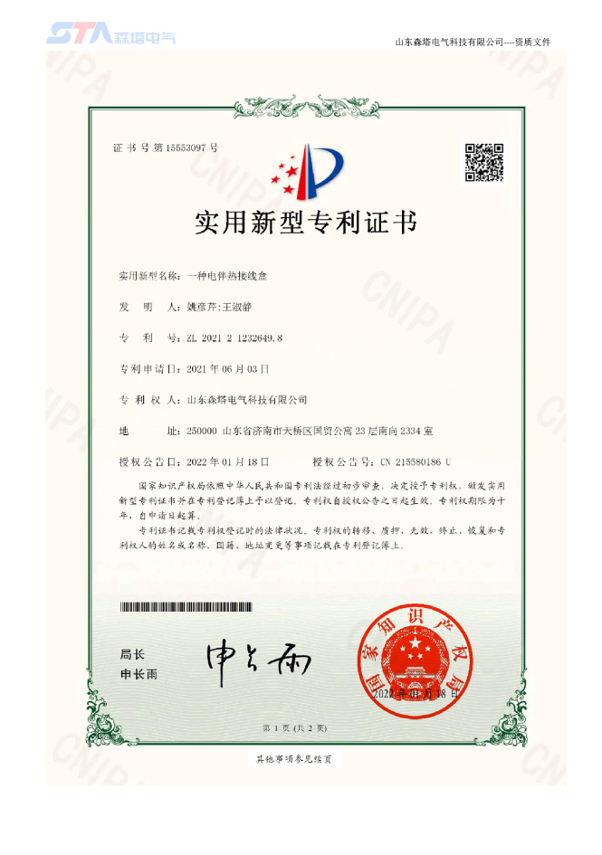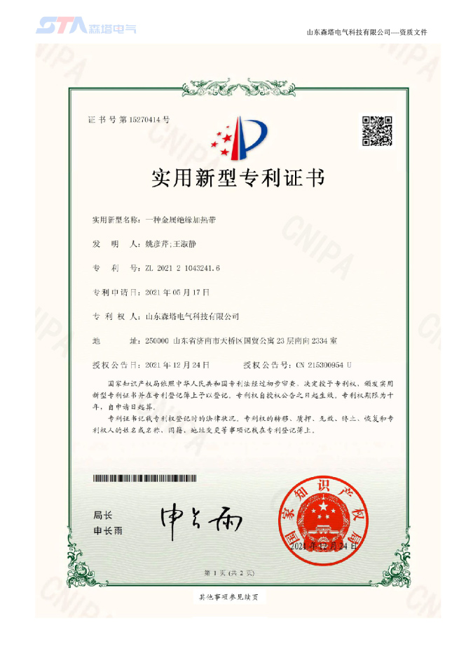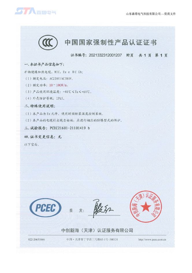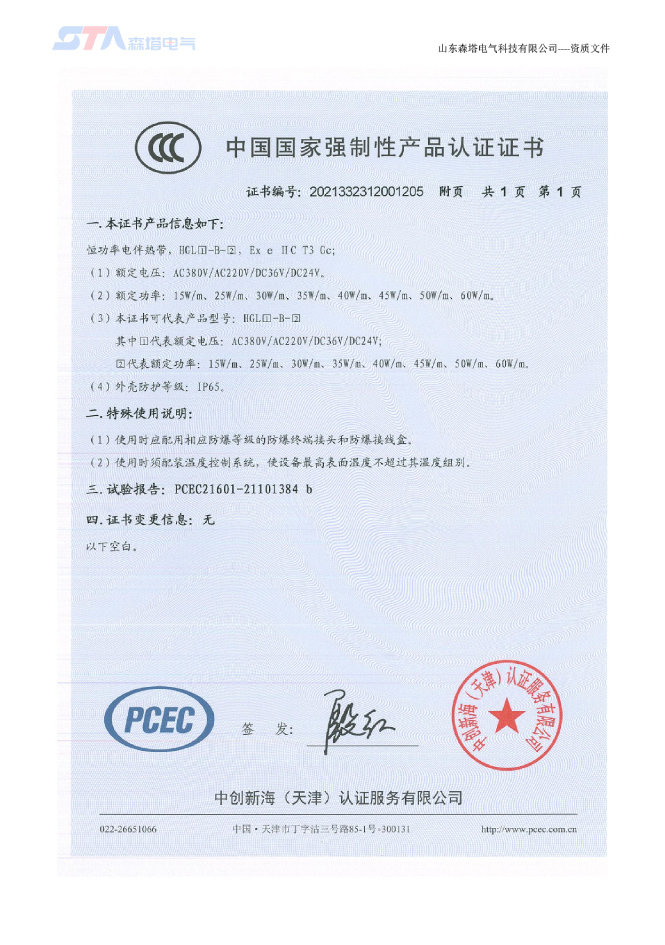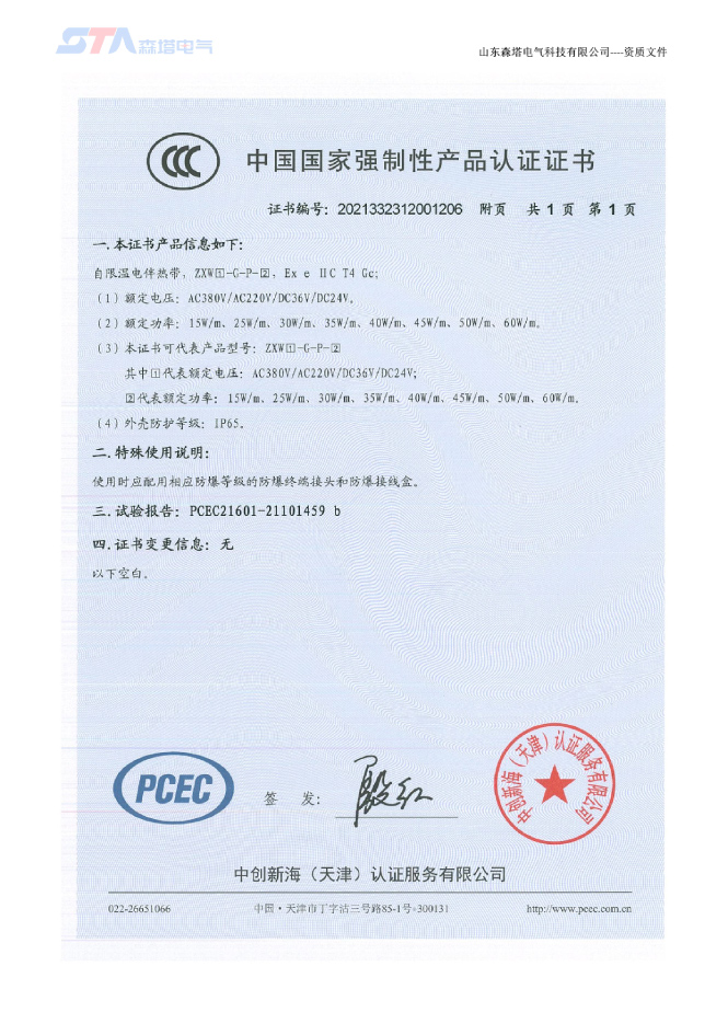 山東森塔電氣科技有限公司成立于2017年3月,位于美麗的泉城濟南,交通十分便利。公司主要從事電熱產品的開發(fā)、研究與制造、電伴熱和電加熱工程的咨詢和設計、產品的生產制造及安裝。是中國電伴熱生產廠商之一,以優(yōu)異的生產技術站立于電伴熱行業(yè)市場,產品通過了“國家防爆電氣產品質量監(jiān)督檢驗中心”的防爆檢驗,取得了防爆合格證。產品主要應用于鋼鐵、新能源、石化、建材、鐵路建設、環(huán)保、電力等領域。